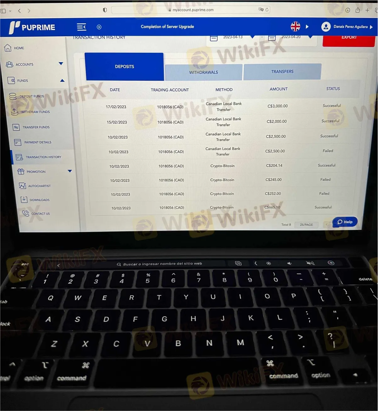 Lo q hallaba muy extraño era que ella nunca hacía jugadas para ganar, sino que era más lo que se perdía, hasta que vuelve a venir con otro cuento diciendo que había que pasar un dinero para la Pam que era asesorada por profesionales y que el dinero allí estaba seguro... Pues se pasaron $6000 dólares para esa otra cuenta y a los pocos días me dice que hay que pasar $2000 más para la Pam. En total fueron $8000. Yo le dije que la cuenta normal de PU Primé se había quedado sin fondos ya que ella tenía todo el dinero invertido en CL-OIL y DJ30 y estaba todo en perdida y al no tener más dinero la cuenta se iba a caer, y ella me dijo que iba a estar todo bien y no fue así... Se perdió todo el dinero y el que se pasó para la Pam también se perdió.