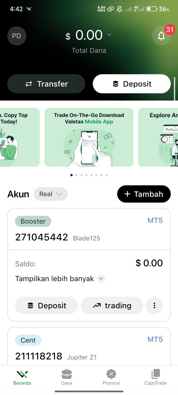Valetaxには、セント、スタンダード、ECN、ブースター、ボーナス、プロの6つのアカウントタイプがあります。低スプレッドを希望するトレーダーはECNアカウントを選択し、低レバレッジを希望するトレーダーはボーナスアカウントを選択することができます。予算に余裕のあるトレーダーはプロアカウントを開設することができます。コピートレーディングも利用可能であり、経験の浅いトレーダーや時間がないフォロワーは、経験豊富なトレーダー(マネージャーやコピートレーディングの専門家とも呼ばれる)の取引をコピーすることで、研究を行う時間がない、またはポートフォリオを多様化したいというニーズに応えることができます。