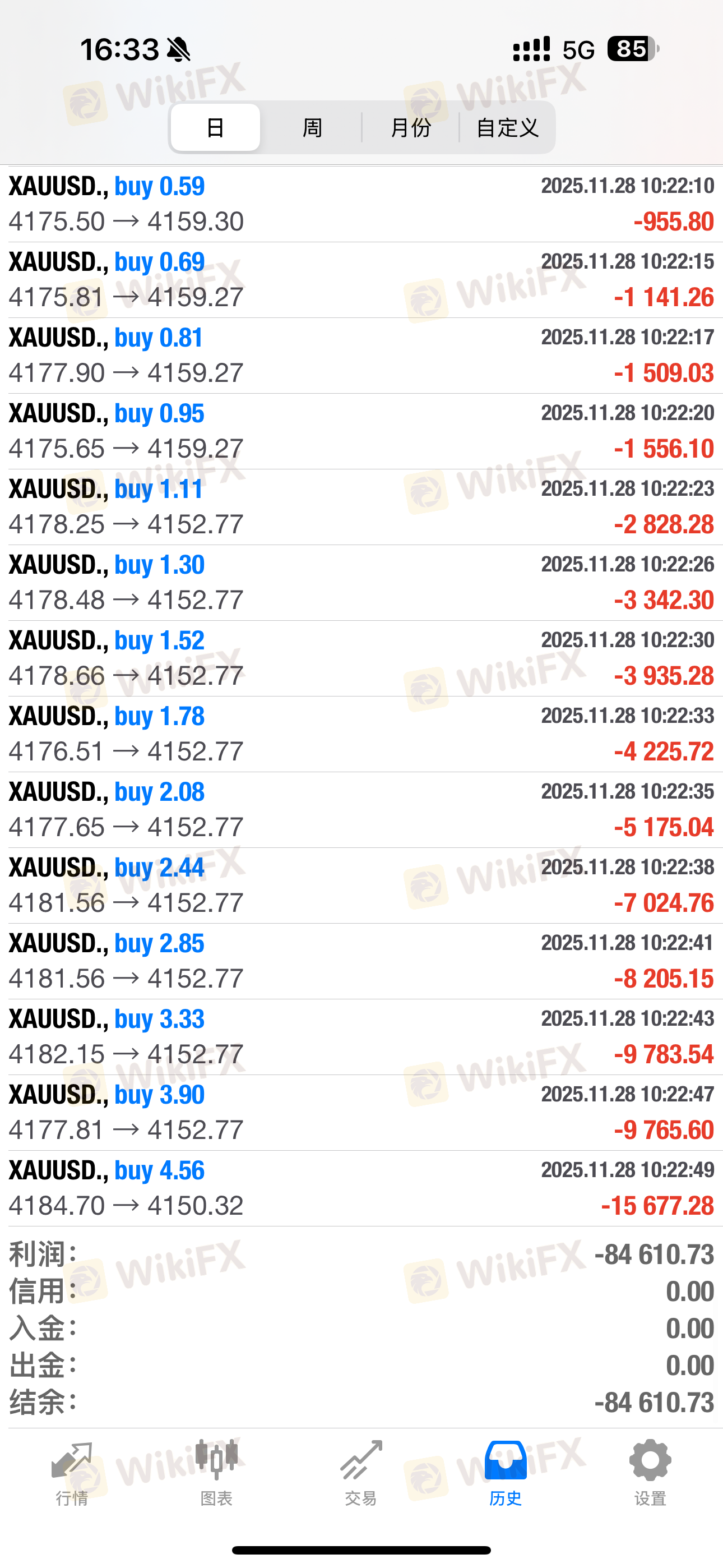 11月28日に取引所がオフラインになり、ブローカーでスリッページが無限に拡大し、私と複数の投資家の口座でオーバーシュートが発生しました。私はEAを使用していましたが、使用したEAの各注文にはコメントが付いていました。しかし、ダウン後、スプレッドが無限に拡大し、取引環境は非常に悪化しました。ブローカーにはシステムの安定性を維持する責任と義務がありますが、ダウン後、取引所は何も対応しませんでした。さらに、EAによる注文にはコメントが付いておらず、プラットフォームシステムの悪意のある操作が疑われます。私はすべての注文をチェックしましたが、コメントのない注文については、ブローカーが合理的な説明をする必要があります。しかし、ブローカーも説明できませんでした。